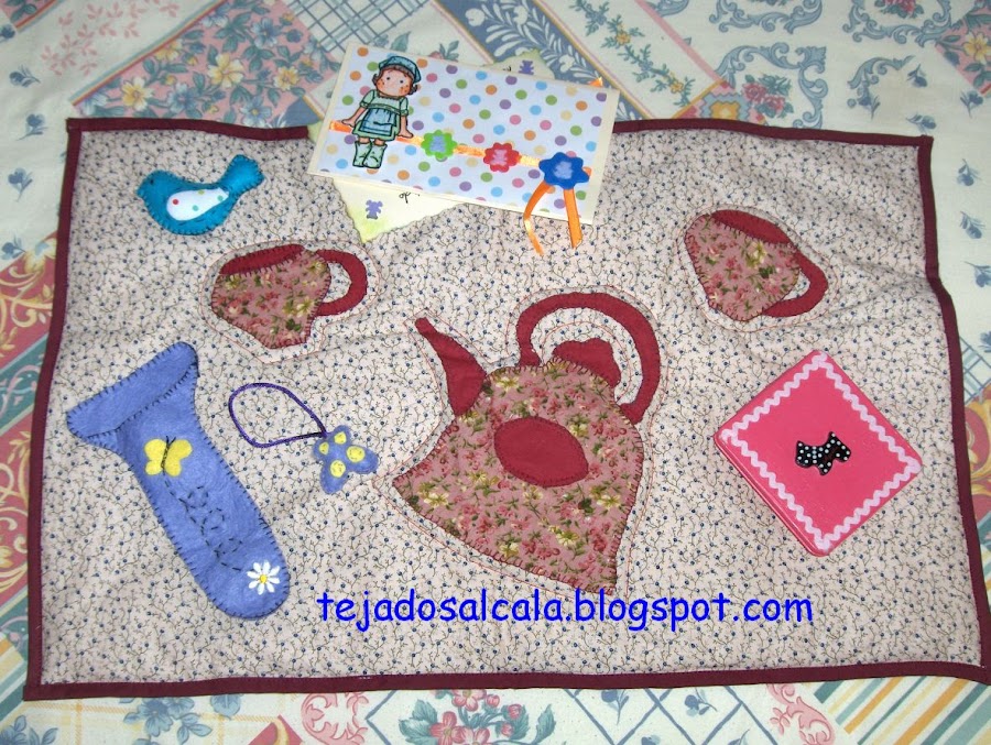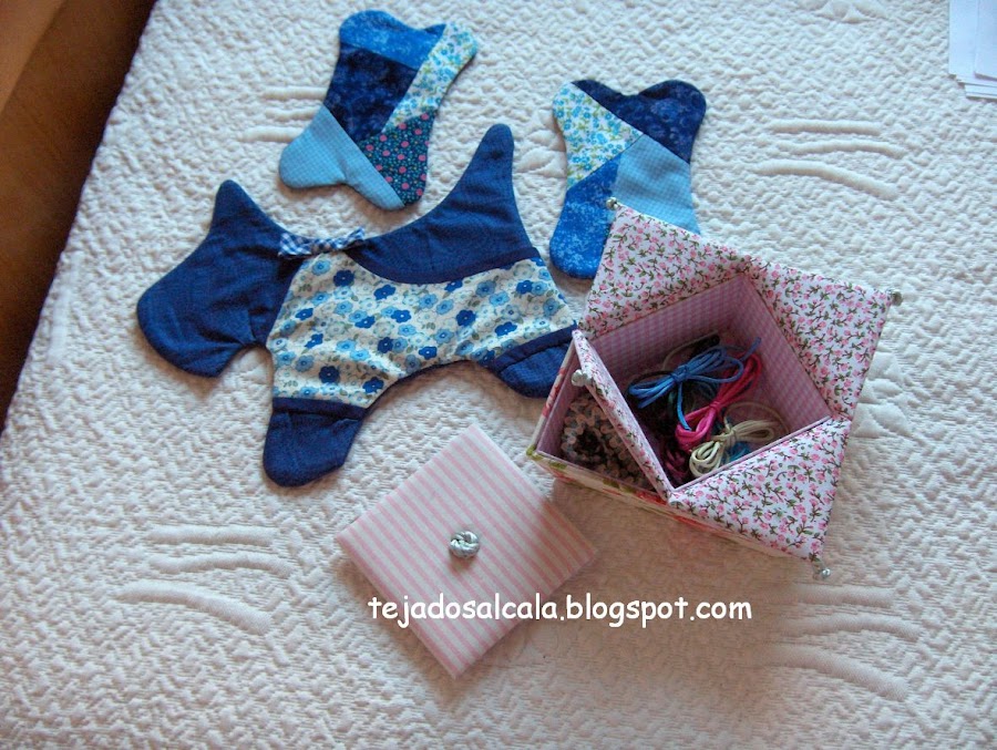 El mantelito con sus agarraderas y una cajita costurero con sorpresa.