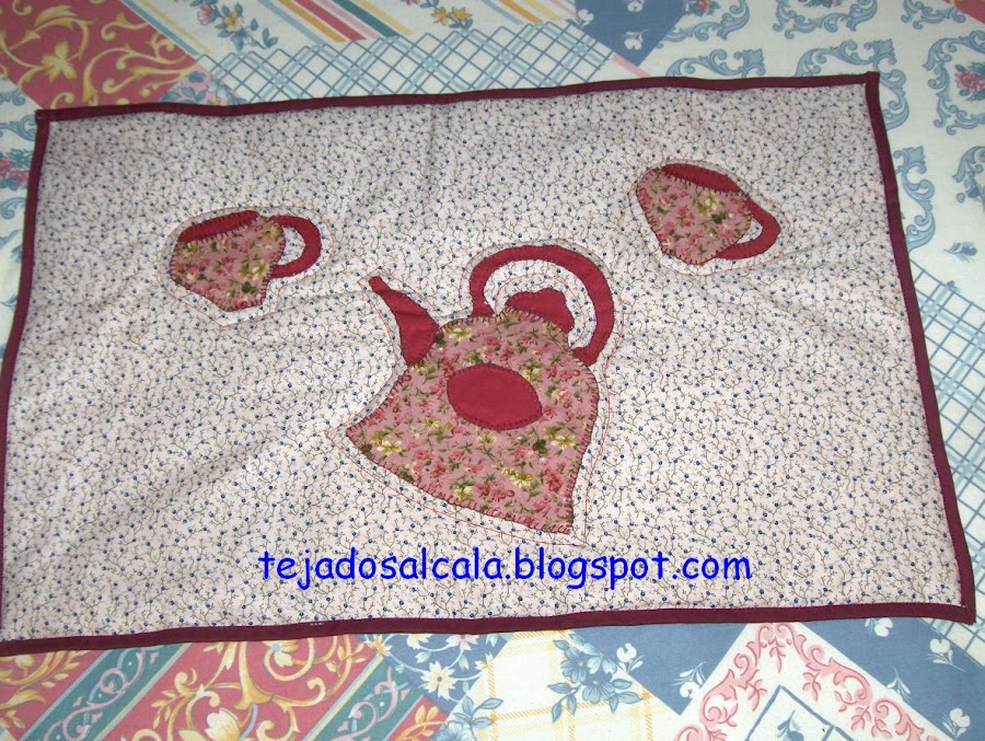 El mantelito. Es la primera vez que hace algo de Patchwork, así que tiene doble merito.