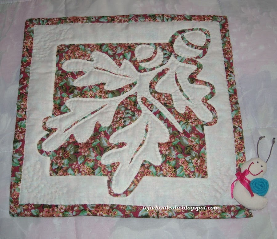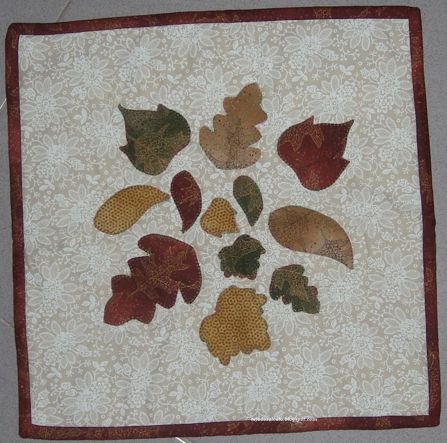 Yo he recibido de Manoli que no tiene blog (de momento) y es este panel tan otoñal con sus hojitas aplicadas. Me encanta. Es precioso.