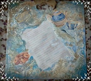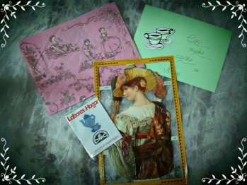 También incluía una preciosa postal de presentación decorada íntegramente por ella y con un transfer perfectamente utilizable...esta mujer piensa en todo.