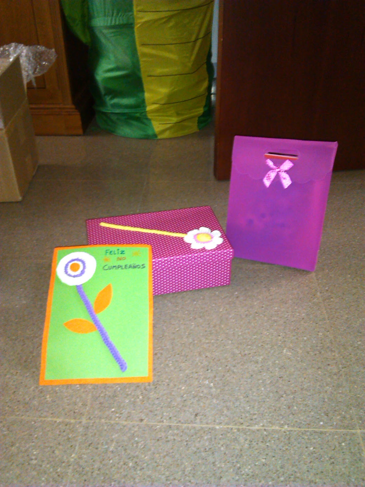 -Un monedero y un bolsito hecho por ella y por supuesto la felicitación de no cumpleaños.