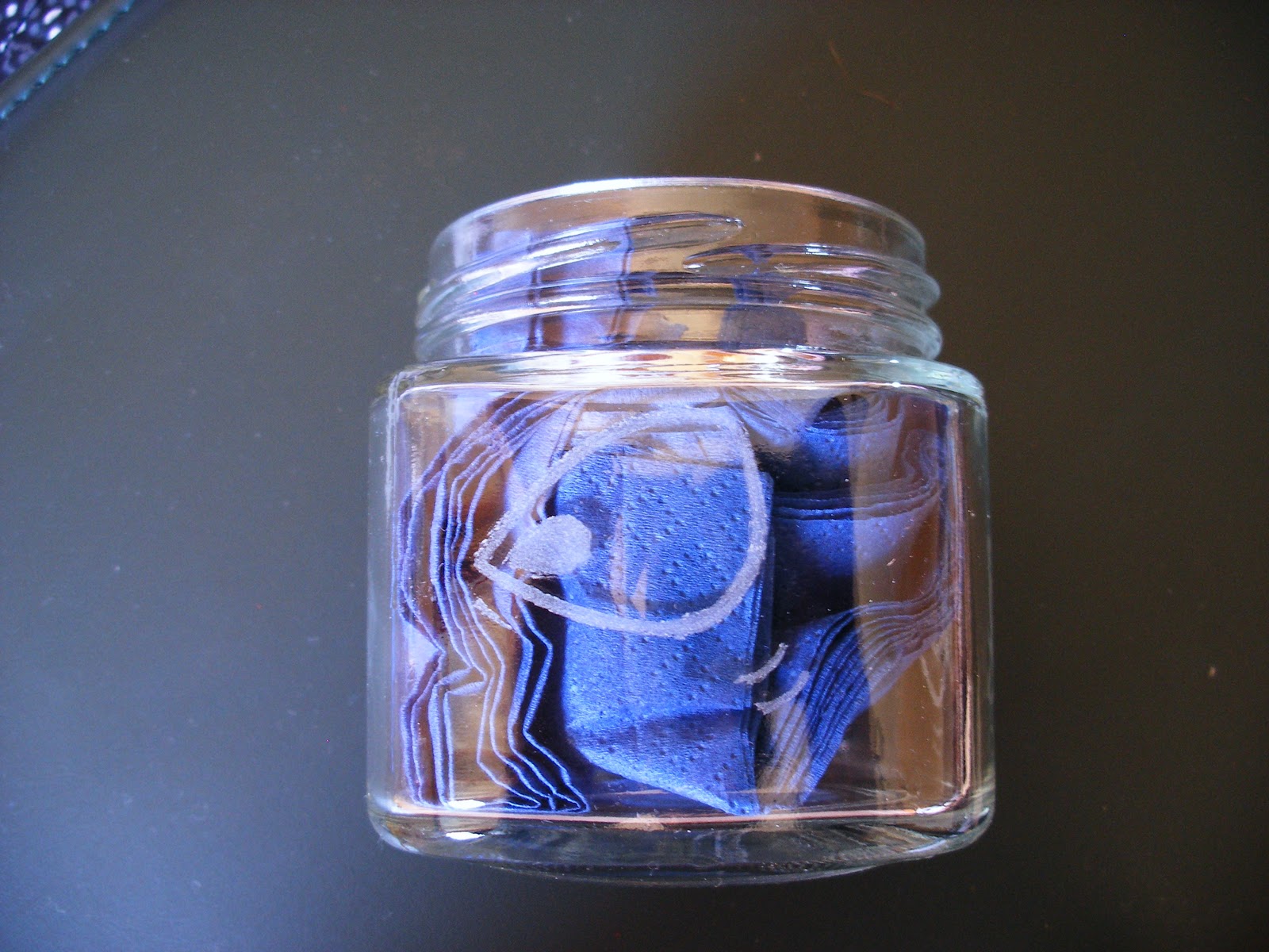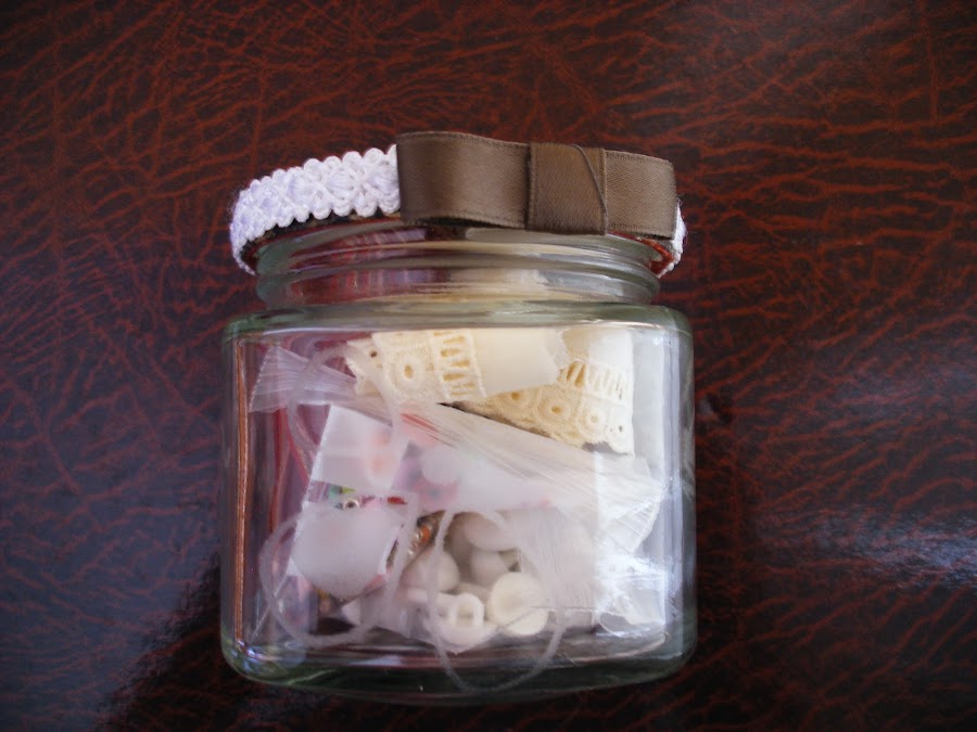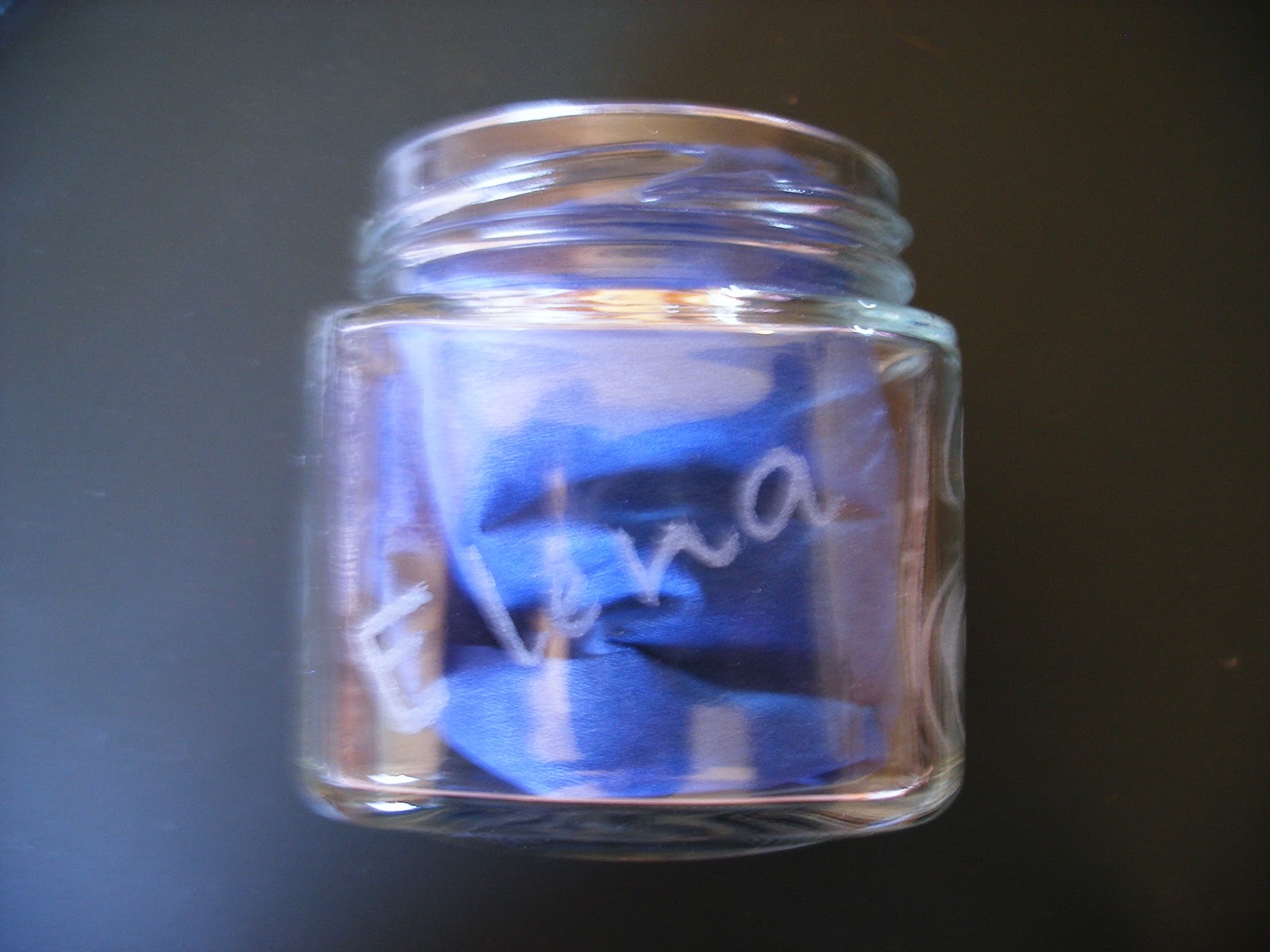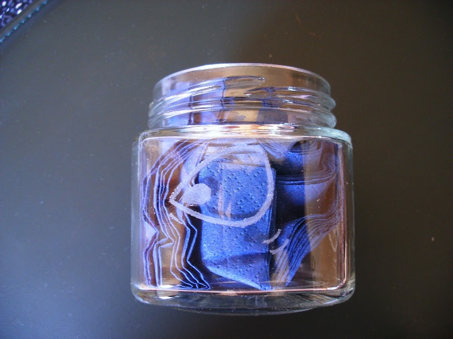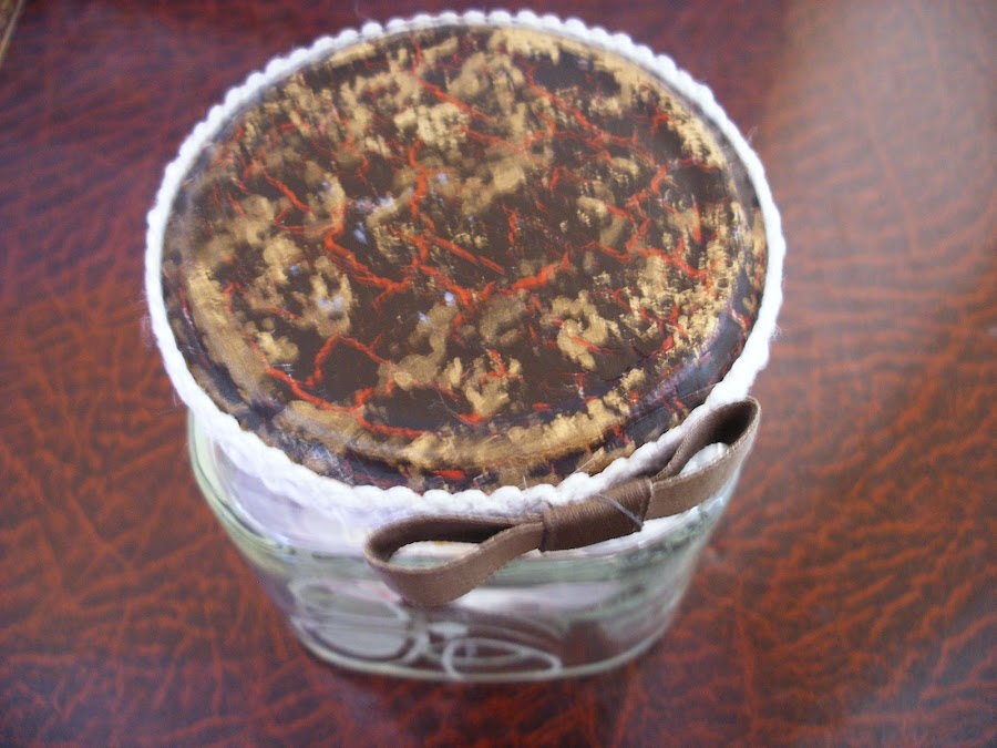 Un bote de cristal....con la tapa decorada y grabado en el vidrio...
