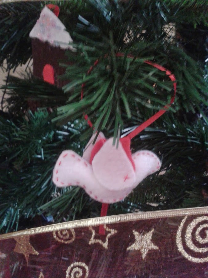 Y un precioso adorno para el árbol que casualmente es de los mismos colores de los que estábamos decorando nuestro árbol así que allí está luciéndose.