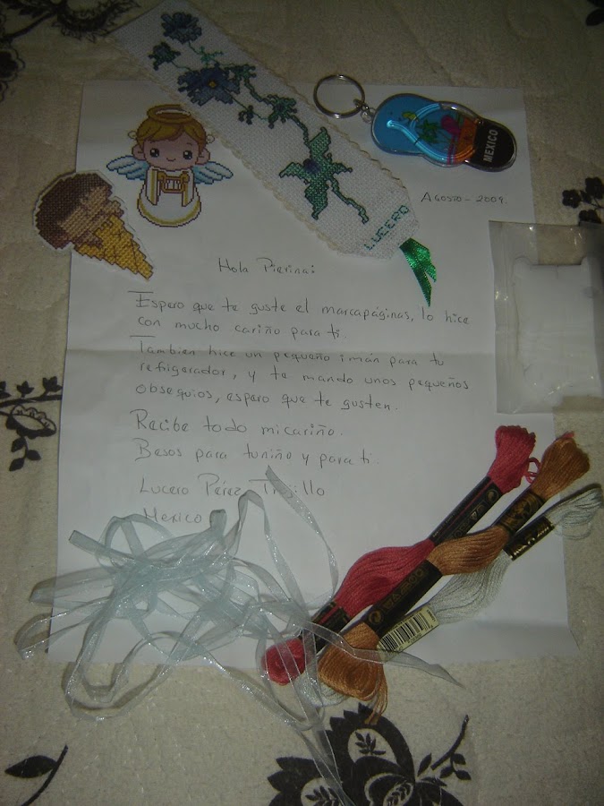 Estos recuerdos los hice para mi sobrina Gaby, fui su madrina de Confirmación. Creo que quedaron bonitos. Fue una combinación de punto de cruz,con hardanger.