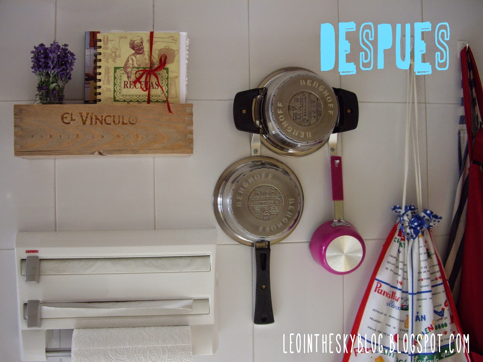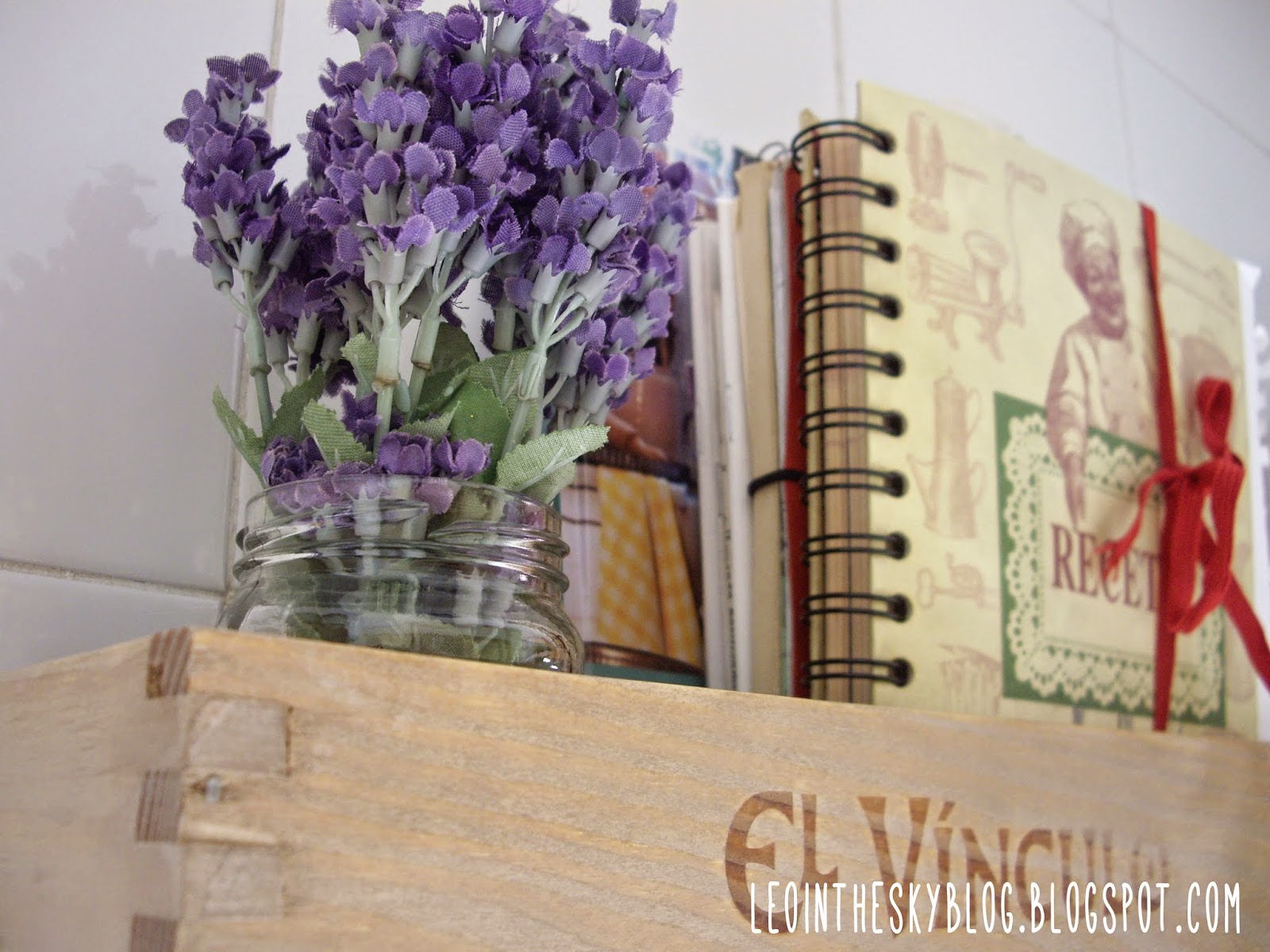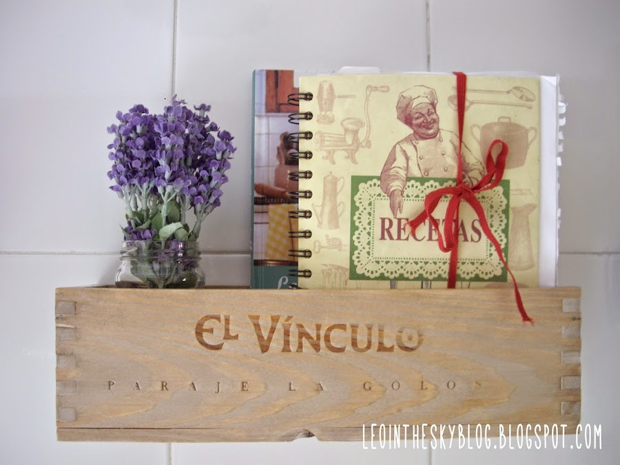 Tenía esta caja de vino desde hace por lo menos dos años..., el vino por supuesto nos lo bebimos antes.., por cierto muy rico :P y la caja estaba pululando por ahí sin rumbo fijo porque no sabía muy bien qué hacer con ella..., hasta que se me ocurrió usarla para cambiar el estante que tenía en la cocina y del que ya me había cansado, por esta caja que le da un toque más rústico y natural.