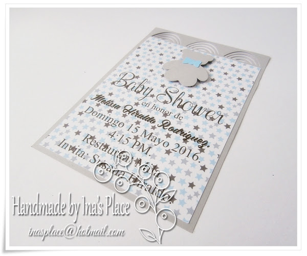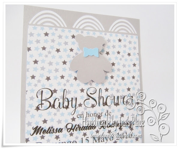 Les comparto este hermoso modelo de Invitación Baby Shower en un tono neutral como lo es el Gris el cual resulta elegante y moderno. El osito con su corbatín azul es el foco central del diseño.