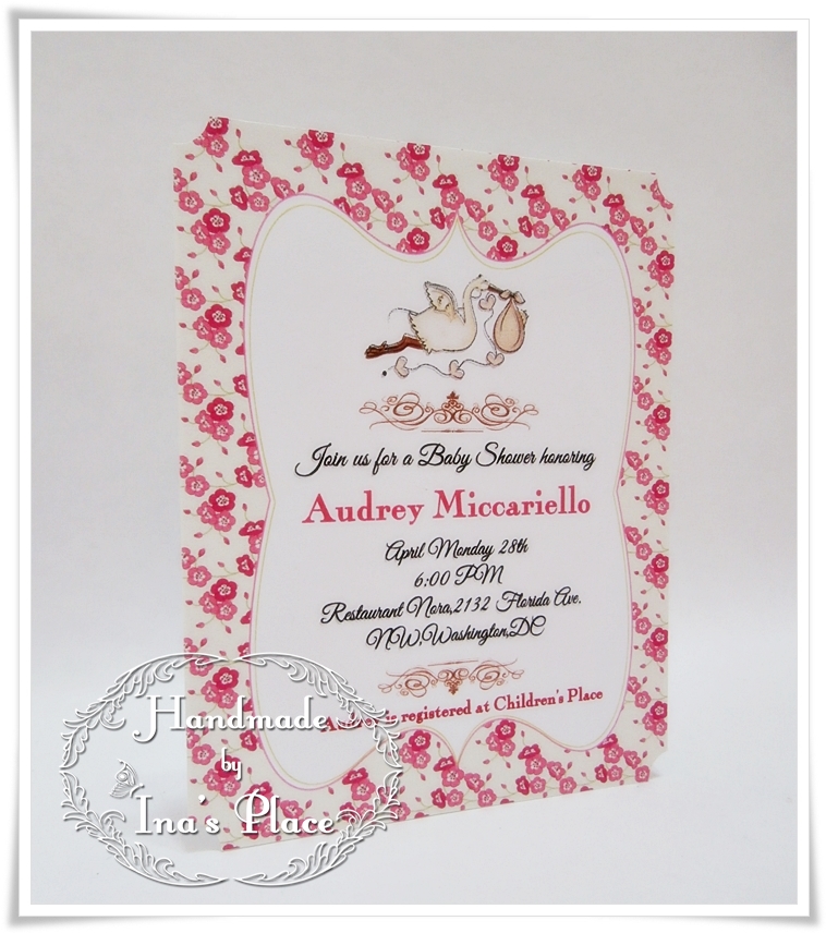 Hermosas florecillas en tonos fucsia y rosa; elaboración con tintes elegantes y una cigüeña de lo más encantadora.