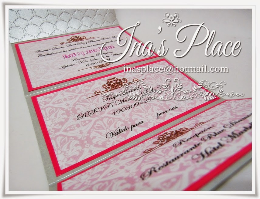 Ya dentro de la invitación para darle realce al texto utilicé un papel decorado brocade