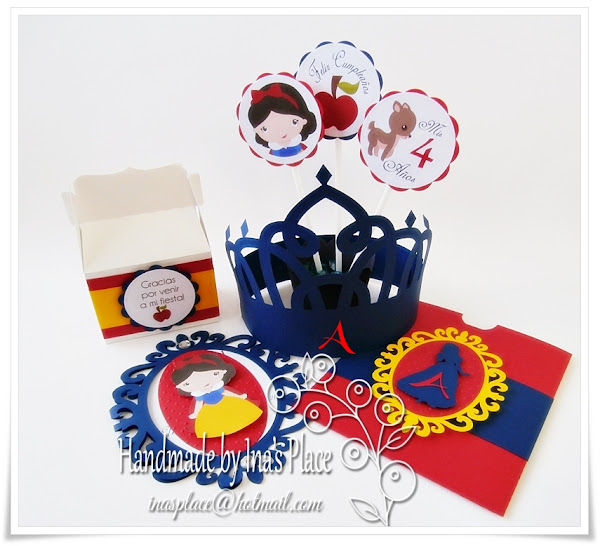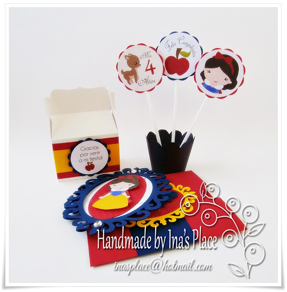 Para cerrar hoy Viernes con el tema de Princesas les traigo un kit inspirado en Blancanieves. Es una invitación de cumpleaños con los colores tradicionales de la misma.