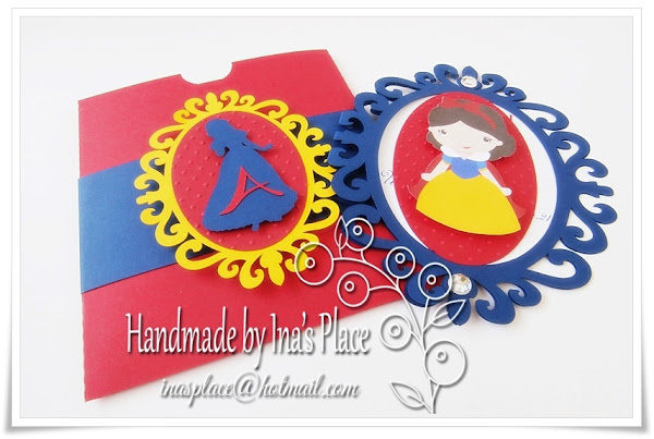 Como les comenté al inicio, utilicé los colores que identifican a Blancanieves, el Rojo, Azul Marino y Amarillo y tomé este hermoso corte para simular un espejo y en base a ello realicé la invitación.