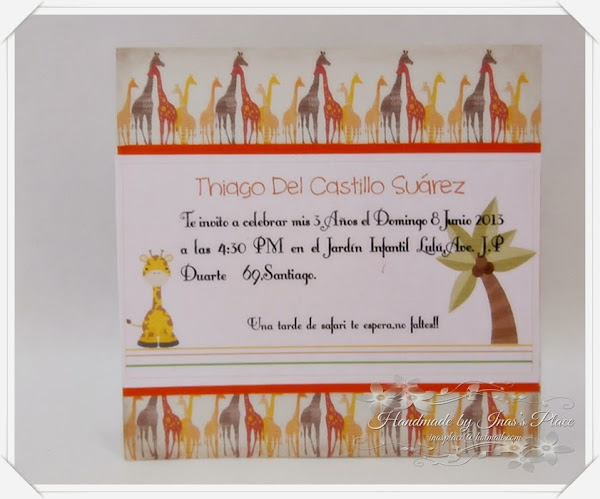 Una semana bastante cálida por estos lados caribeños!! Coincidencia?? Pues hoy como última entrega de la semana les traigo una invitación con motivo de selva ya que el animalito escogido ha sido la girafa,la cual es muy utilizada tanto para esta festividad como baby shower,etc... Que les parece??
