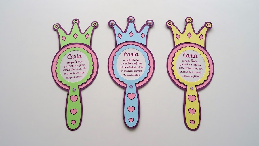 Con esta invitación solo habrá una princesa en la fiesta! Créalas en varios colores o con papeles glitter para un aspecto más glamuroso, no dejarás indiferente a nadie. Incluye también decoraciones como perlas, brillantes o un listo para que sea única.