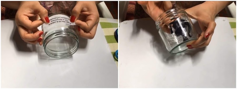 Iniciamos pegando dentro del frasco