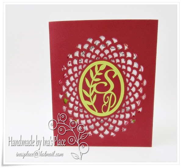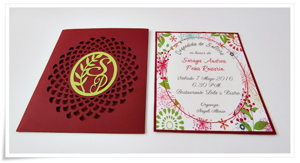 El sobre le aporta un toque sobrio a la invitación.El detalle central son las iniciales de la festejada en un color Verda Manzana que le va muy bien al Rojo Vino.
