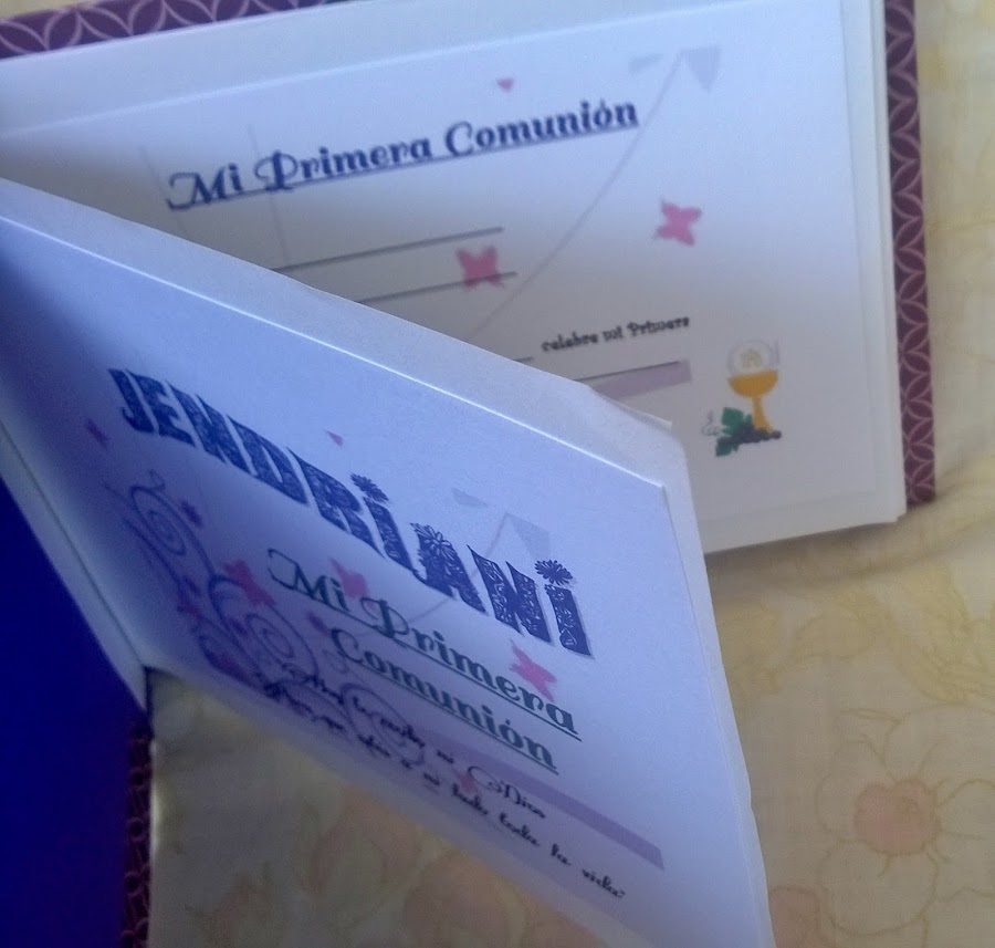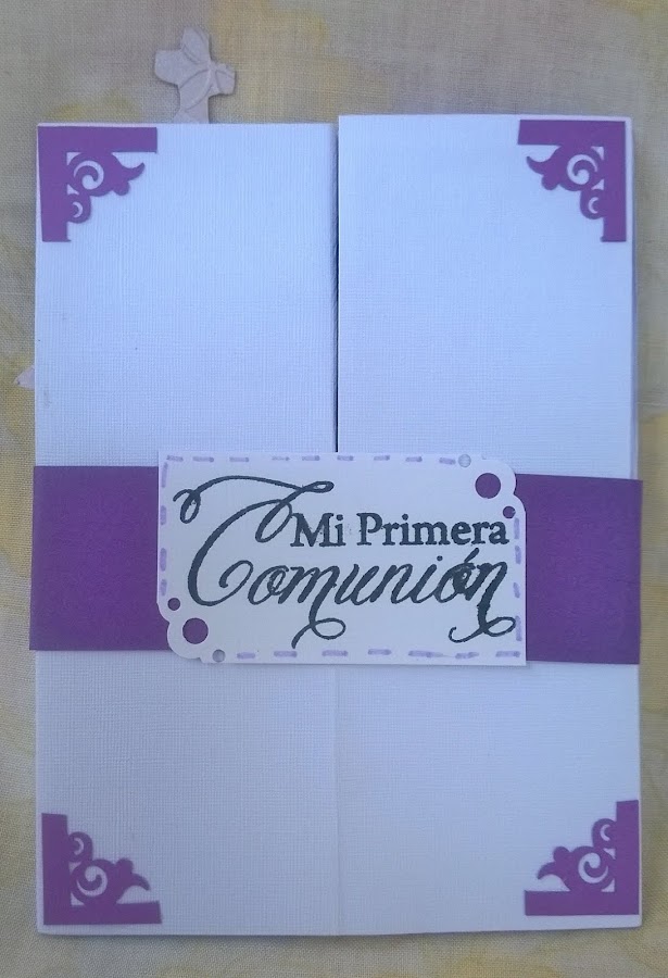 Un kit que dejo a su dueña encantadísima: invitación tipo tarjeta-caja y un libro de formas a juego en color morado.