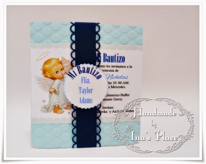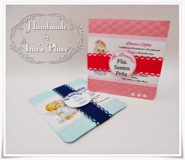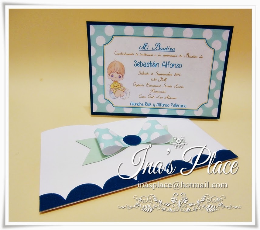 Hoy les traigo unas invitaciones un tanto viejitas donde he utilizado las tiernas y hermosas imagenes de Precious Moment, no sé el nombre que tienen en español; el uso de estas nos dan infinidades de idea y son tan versátiles que las podemos usar para varios eventos pero es en los Bautizos donde tienen cierta primacía. Aquí les dejos una muestra.