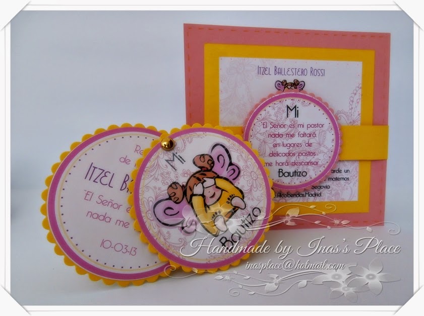 El souvenir/recordatorio de la actividad lo realicé acorde al medallón de la invitación con un twist divertido al colocarle esa linda imagen de angelito,graciosa,no?? (:
