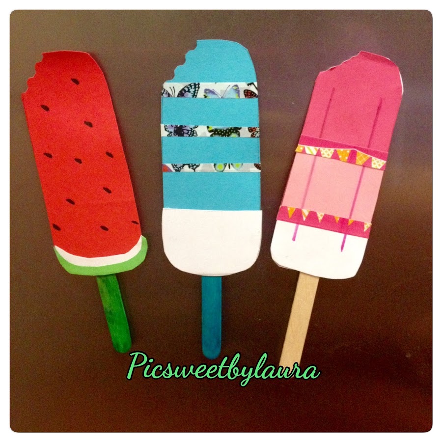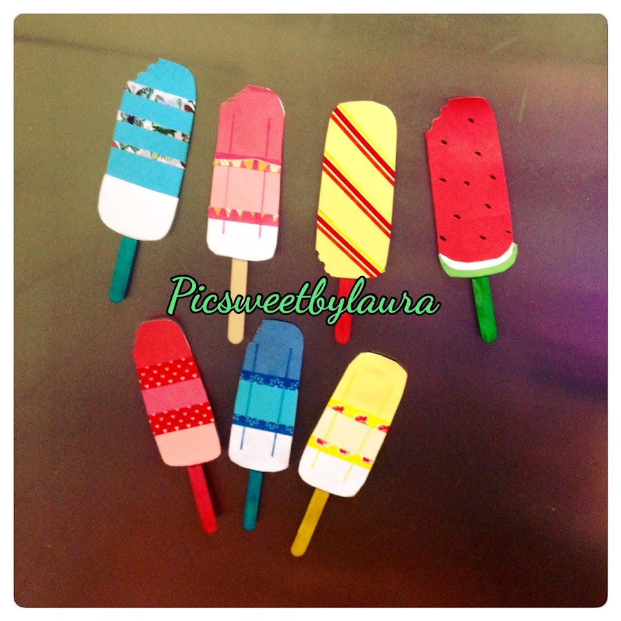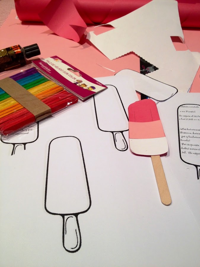 ¡Buenos días! Hoy traigo otro post incomestible, aunque a mi me dan ganas de darle unos cuantos mordiscos a estas invitaciones de cartón. Se trata de invitaciones veraniegas que simulan unos helados de gustos muy variados. La idea se me ocurrió chafardeando por estos mundos, como siempre, pero yo además le añadí la idea del imán para que los padres una vez reciban la invitación no la pierdan, si no que la puedan colgar en la nevera y así no olvidarse del evento.