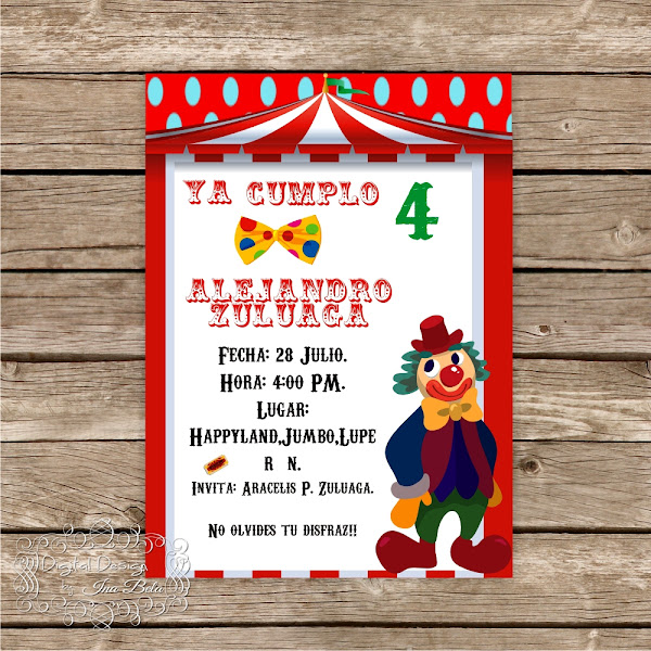 Hoy les traigo una sencilla invitación con tema de Circo, muchas ideas para realizar e infinidad de temáticas!!