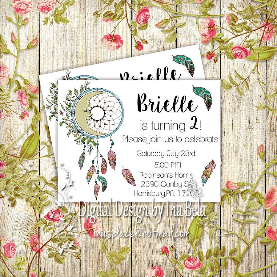 Hoy te muestro uno de los diseños nuevos de la semana de mi tienda. Inspiración Boho Chic,la tendencia del momento.Una invitación para Cumpleaños sencilla.