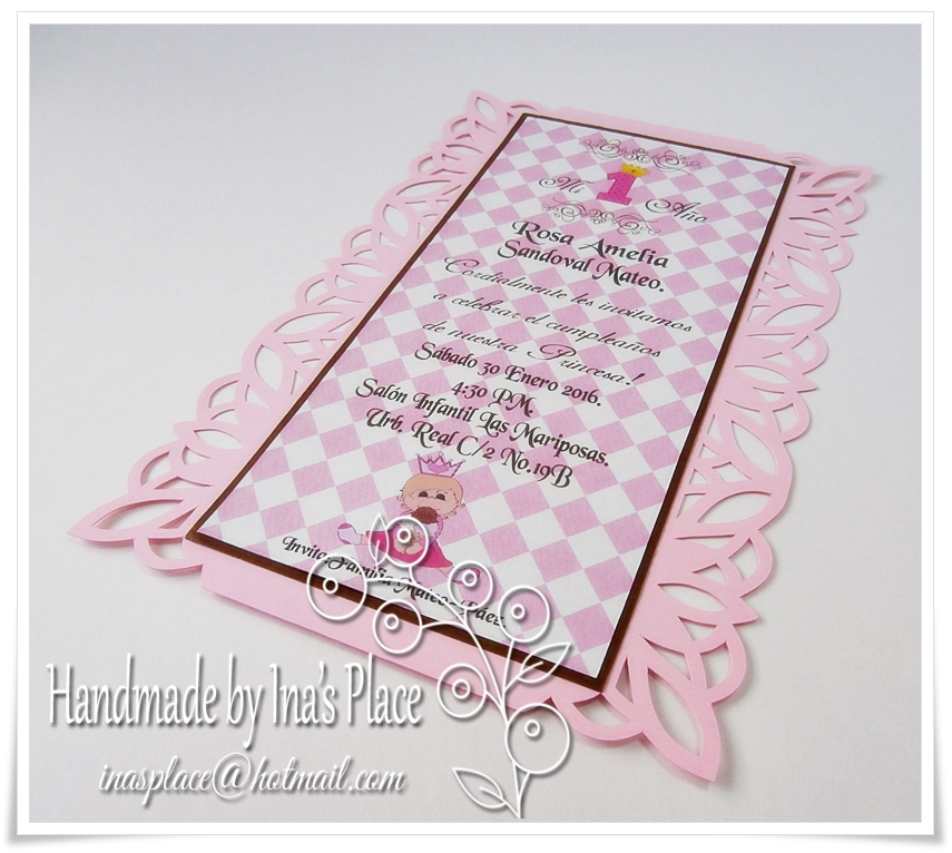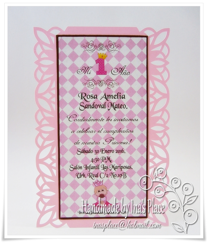 Cierro la semana de trabajo mostrándoles dos invitaciones en uno de mis colores favoritos que es el Rosa símbolo de la feminidad/femineidad representando la delicadeza y ternura. Una de ellas inspirada en la Princesa Sofía.