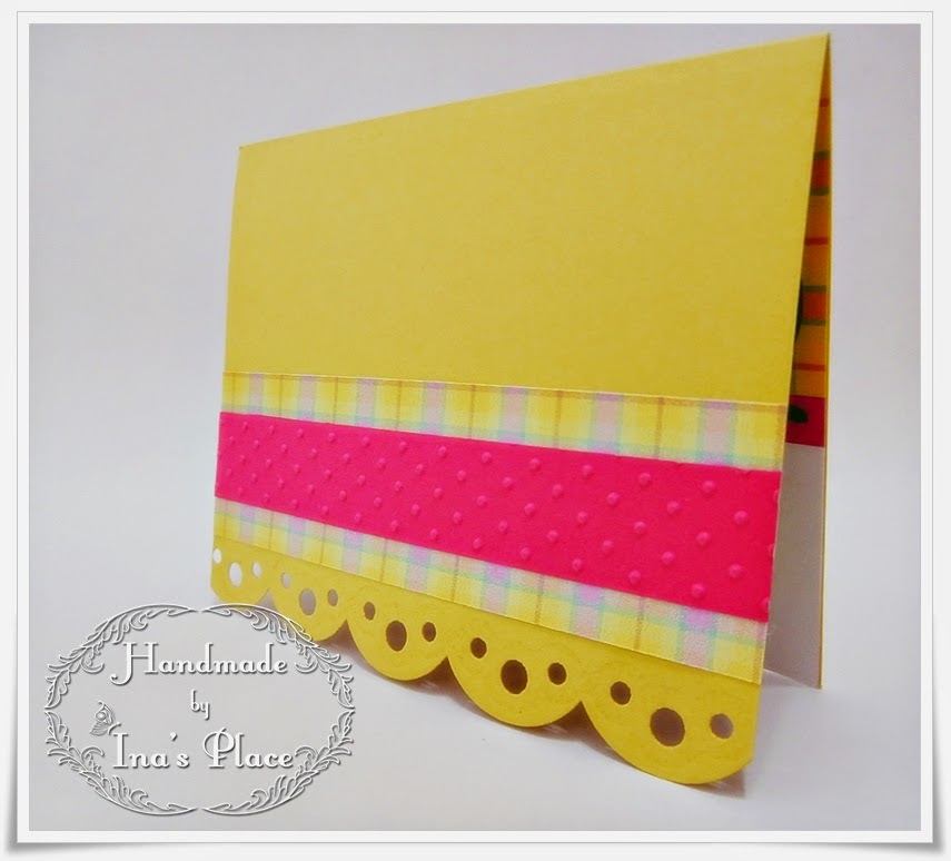 En esta ocasión la trabajé en formato "folded" - tarjeta doblada - no hay necesidad de utilizar sobre(opcional). Un borde con textura fucsia más el perforado que lleva y listo!!