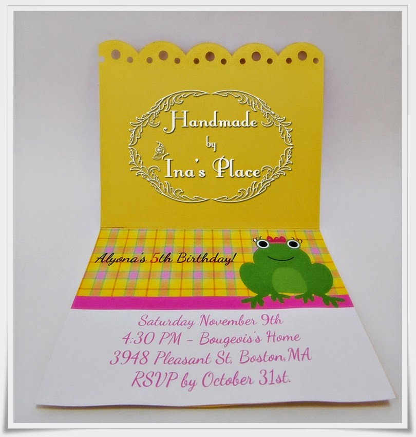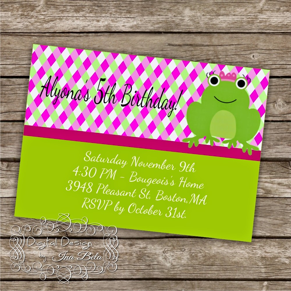 Este lindo diseño resulta muy divertido por la ranita con su corona,jijijijij.Fondo decorado mas colores sólidos y lista para ser enviada.