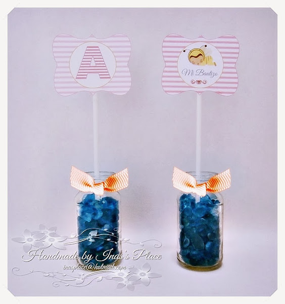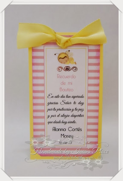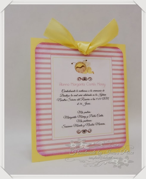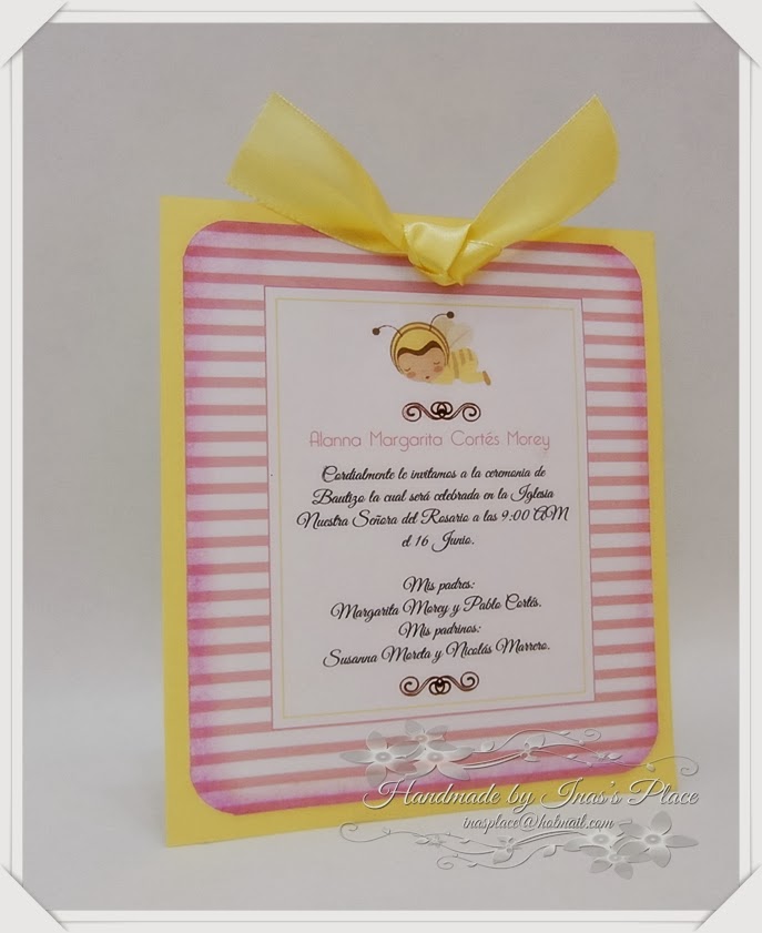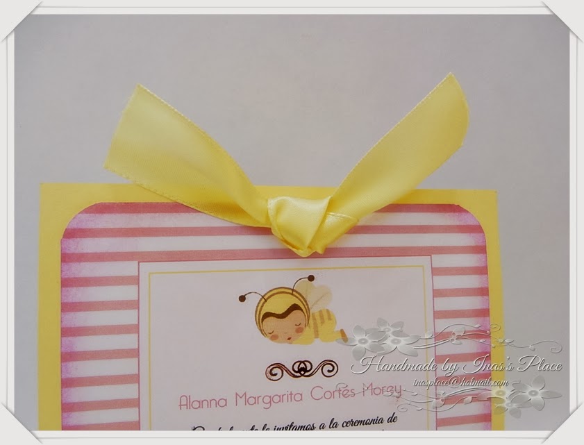 Me encantó la combinación con el papel decorado a rayas y el toque de amarillo pastel en el cintillo.