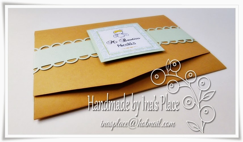 En el interior escogí un papel con motivo brocado en combinación con el color que es el verde pastel o mint/menta. Para el sobre tomé un color tierra y los dos tonos quedaron perfectos!!