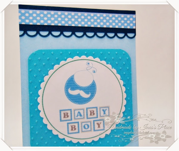 En esta invitación escogí la monocromía en azul más el papel estampado y realzar la imagen central con una textura de puntos.