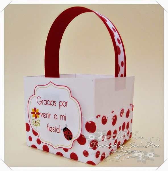 Lo clásico hubiera sido utilizar un papel decorado con fondo rojo y puntos negros pero quise salirme de lo normal y utilicé éste y así se destaca mejor la niña vestida con el disfraz.