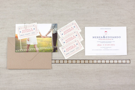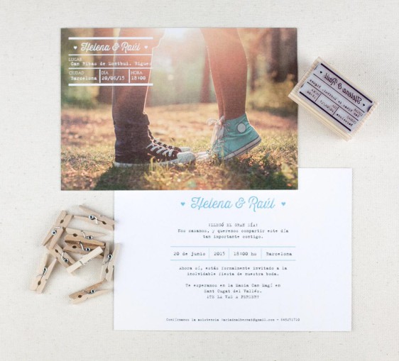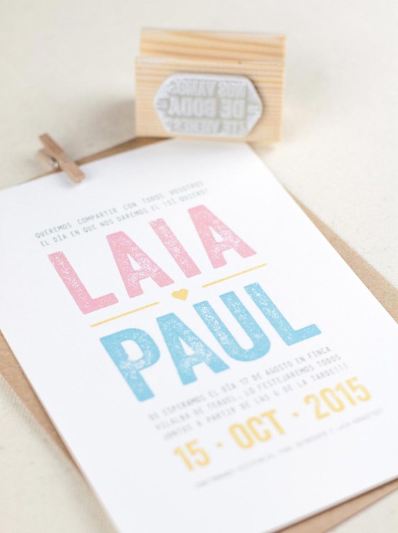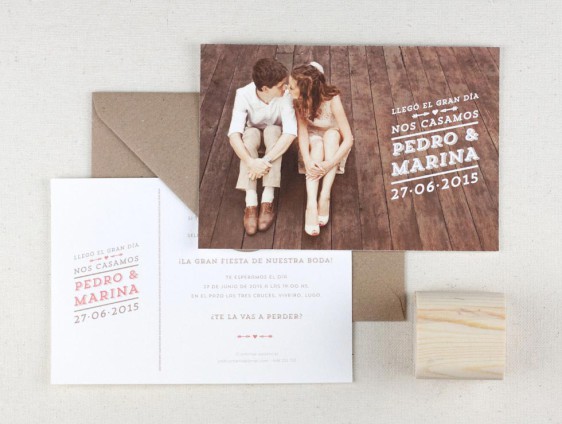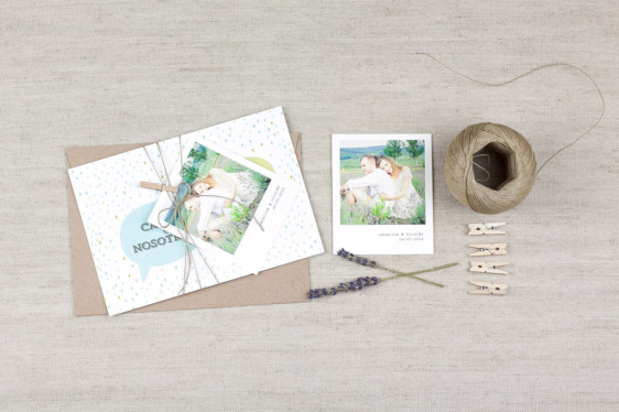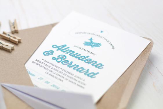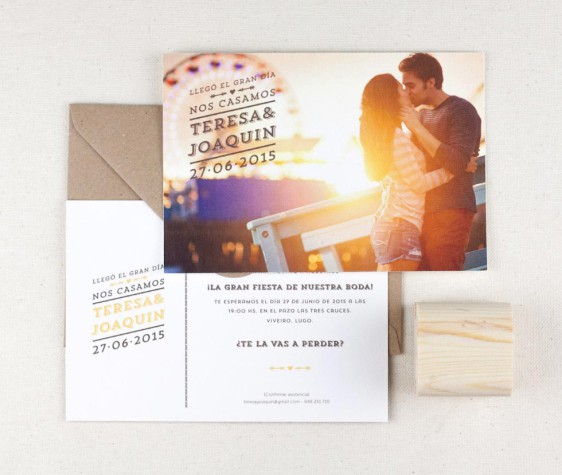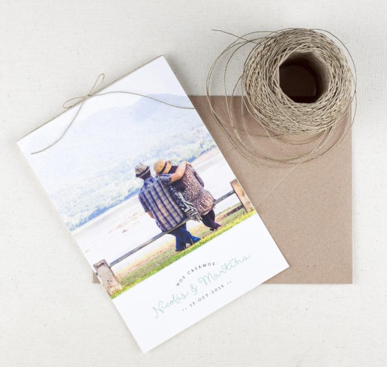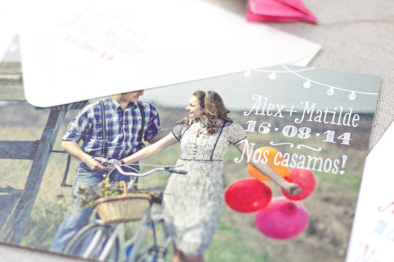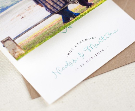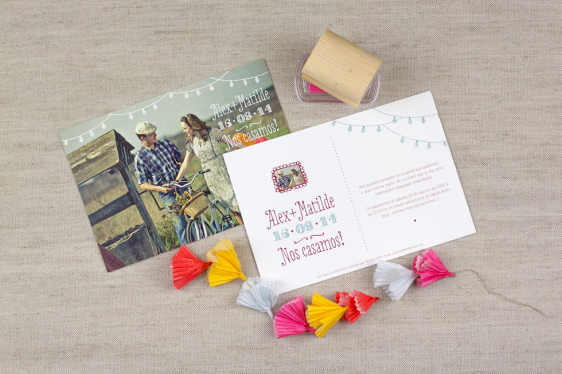 Esta invitación de boda de diseño alegre y original es ideal para una boda desenfadada y divertida como la vuestra. Personalizaremos la invitación con vuestra foto, texto y los colores que más os gusten.