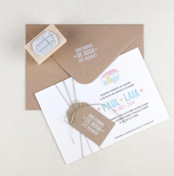 La invitación de boda “Vintage” es ideal para bodas hippies, informales, divertidas y desenfadadas… más que una boda una fiesta para celebrar una nueva aventura. Personalizaremos la invitación con vuestro texto y los colores que más os gusten.