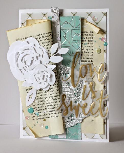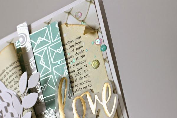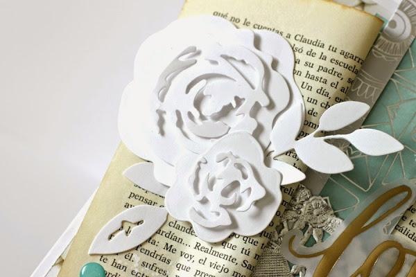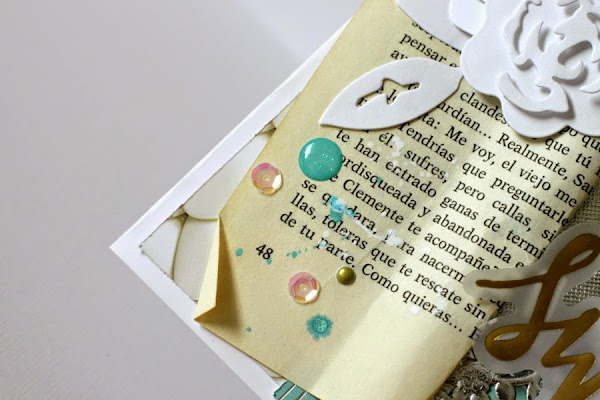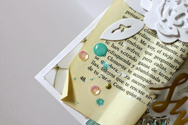 Así que me puse manos a la obra, donde el centro de la tarjeta se llena de un par de hojas de libro.
