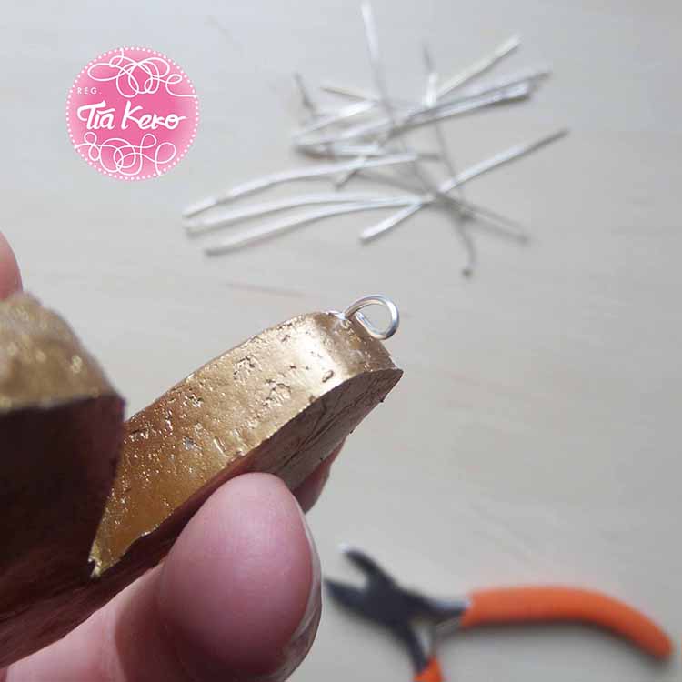 4- ¿Cómo vamos a hacer para colgar la inicial en un llavero?, pues muy sencillo, con un bastón alfiler de los que se utilizan para hacer bisutería podemos hacer un ganchito que después colgaremos en el llavero, igual que en la imagen inferior,