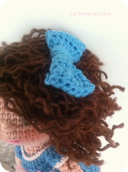 Otro detalle, quería que llevara un lazo en el pelo y de crochet.