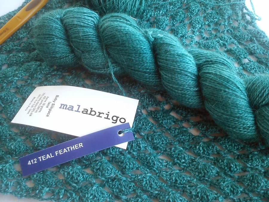 Empecé a tejerlo el día que quedamos las No8DAS para tejer durante 24 horas (pincha aquí para ver nuestra locura) y enseguida se organizó un mini Cal (pienso y creo que nadie lo ha terminado) y nos pusimos todas manos a la obra.Yo elegí la lana Alpaca silk de Malabrigo (regalo también de las NO8DAS) un tacto suave suave suave.....mmmm
