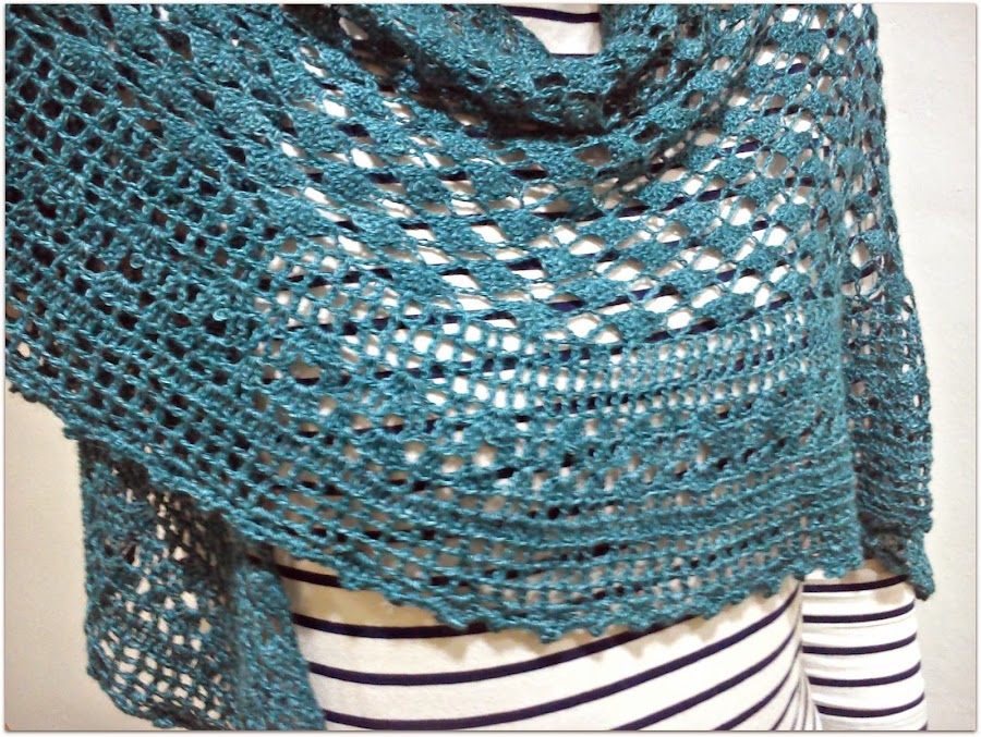 Este chal también lo tejieron varias alumnas de mis clases (pincha aquí)y otras varias recopilaron el patrón porque la verdad es que es espectacular el resultado, eso si, a mi se me ha hecho eterno y aunque me encantaría repetirlo....no lo sé aún, ¡¡¡así que lo pensaré mañana!!