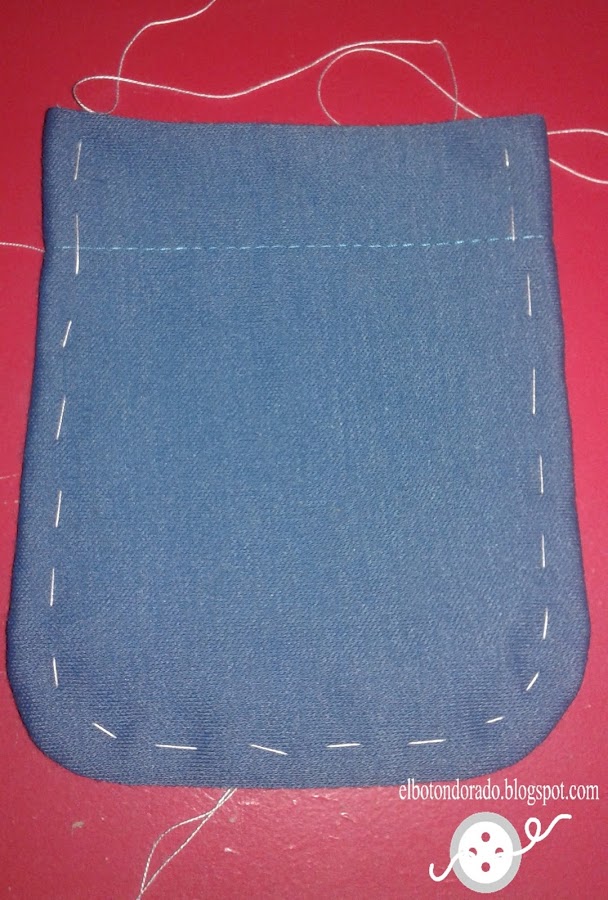 Ponemos alfileres para después, pasar un hilvan alrededor de todo el bolsillo.