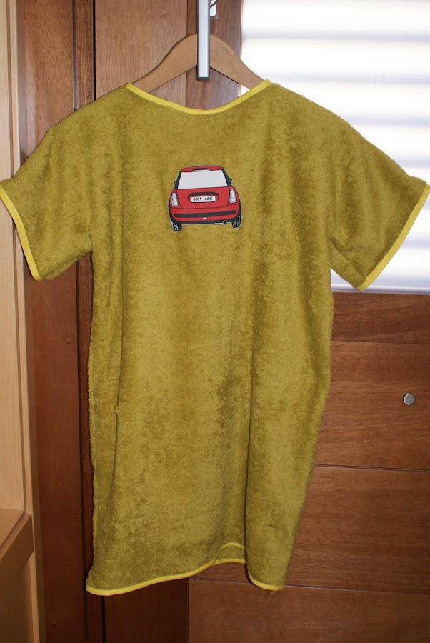 Doncs això, següent creació acabada, un albornós per en Marçal. L"he tret del següent tutorial: http://www.sewmamasew.com/store/media/blog/childspoolrobe.pdf