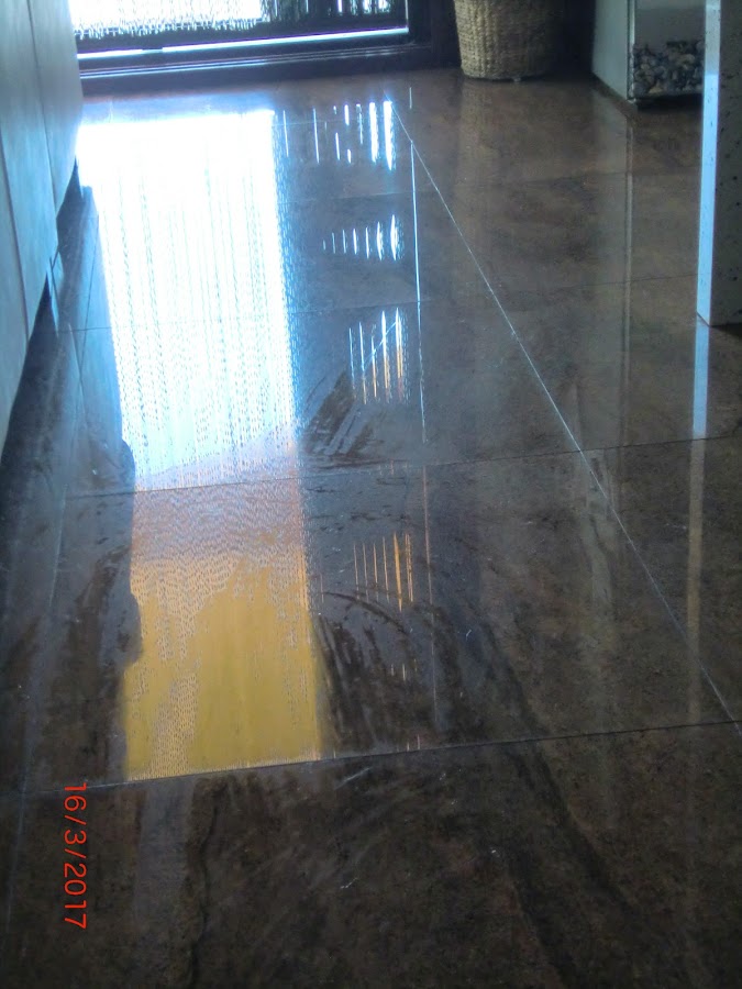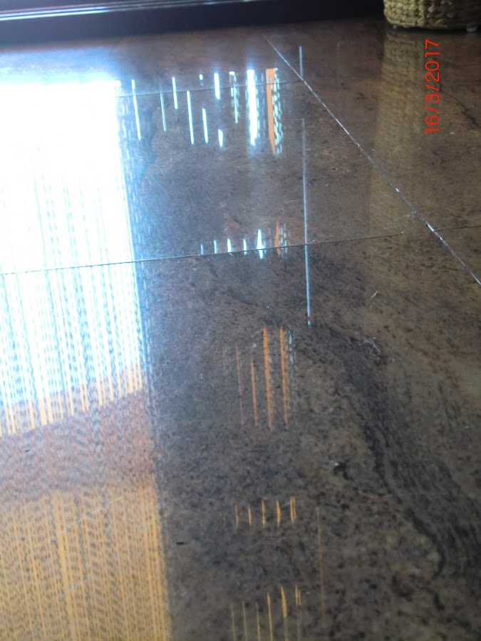 Mi suelo es de porcelanite, esas baldosas que parecen espejos y no siempre quedan sin verse las pasadas de la fregona... Pues mirad que bien que me quedan con mi jabón-base-mezcla: