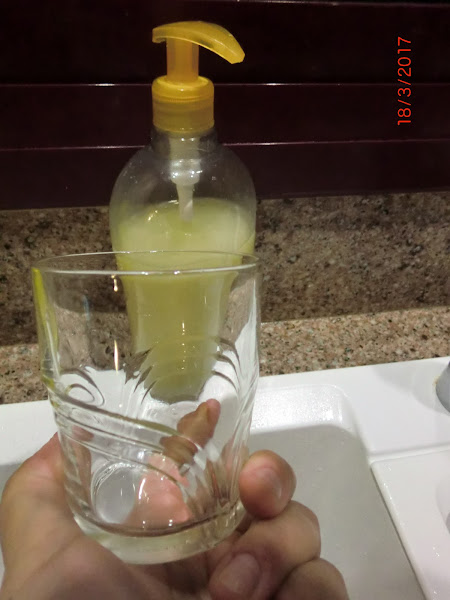 Aún así, con el frío de estos dos meses tuve que cortar alguna garrafa para sacar el jabón de su interior pq había espesado y no salía por sí solo, aunque cuando lo envasé era gel líquido, tenía consistencia de gelatina rota al ir a echar. Y tuve que añadir un poco más de agua para poder batirlo una vez más.