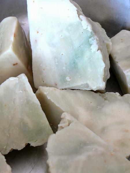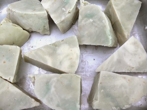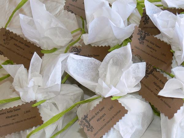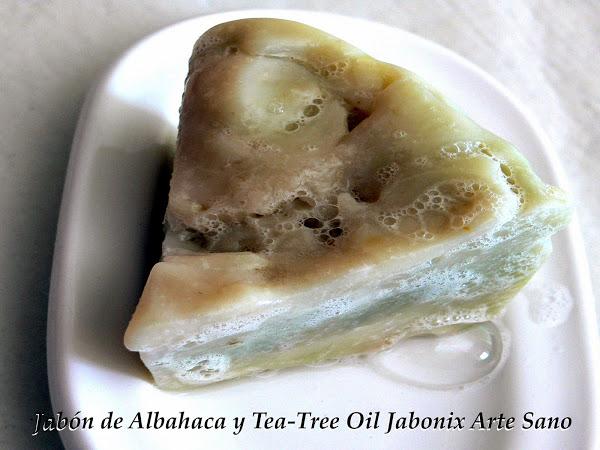 Las vetas verdes y blancas de este jabón son producto de la mezcla y del oleato de Alabahaca que le hemos agregado.