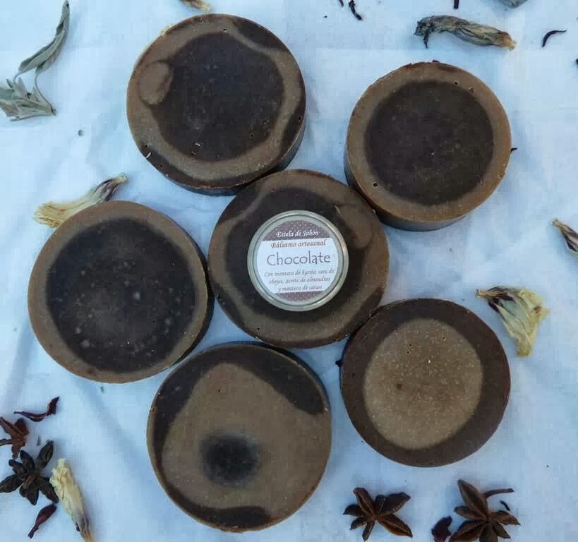 Los ingredientes de este jabón son: aceite de oliva virgen extra, manteca de cacao, cacao en polvo, agua destilada, aceite de coco, aceite de palma, aroma de chocolate, aroma de galleta maría y sosa caústica.