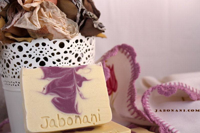 Éste jabón en concreto lo hice a petición de una chica (Lourdes) que nos visitó hace tiempo estando en la feria del The Pop Up Market y hablando nos comentó que tenia la piel muy muy seca y que había oído hablar de las propiedades de la manteca de karité y que ya había probado jabones con este componente y le habían gustado porque le iban bien a su tipo de piel, así que probó unos cuantos de los que teníamos en ese momento, pero le comenté que le podría preparar un jabón más específico con más cantidad de manteca de karité en la traza, asi que intenté elaborarle un jabón super hidratante para que quedara contenta ^-^, por ello le preparé un jabón tal que así;