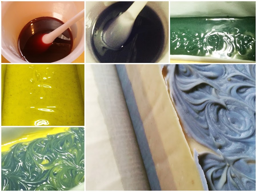 De ésta pasta aparté una pequeña cantidad,para poder hacer unos firulillos por encima del jabón,antes de añadirle el sobreengrasado acompañado del almizcle y ponerlo en el molde.