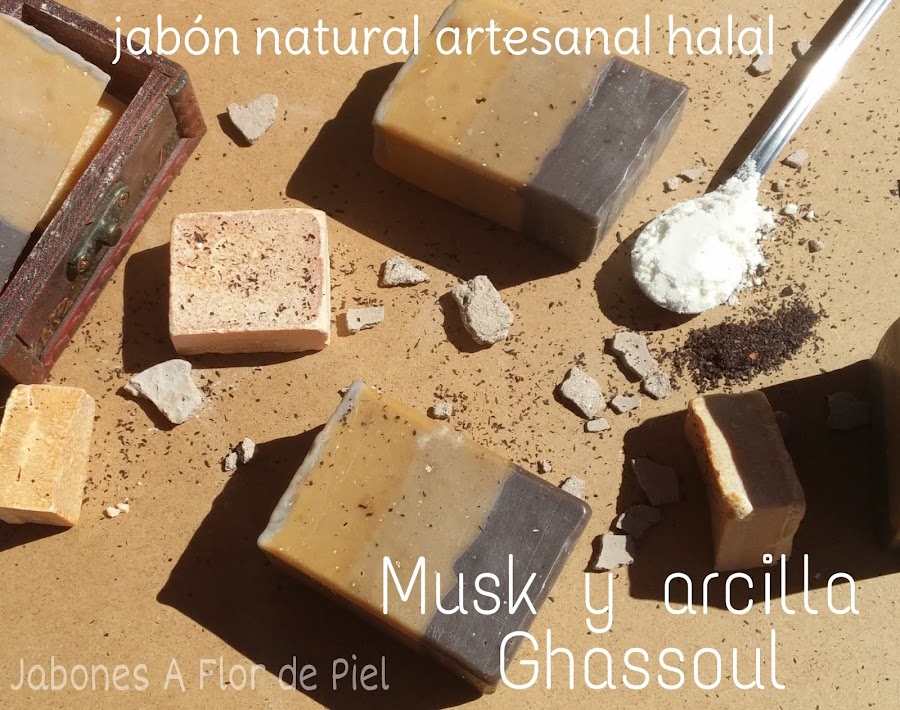 Y por fin puedo enseñaros el jabón de Musk y Ghassoul,un jabón que fue "cociéndose" en mi mente muchas semanas.Llevaba mucho tiempo deseando preparar un jabón de Musk,también conocido como Almizcle.