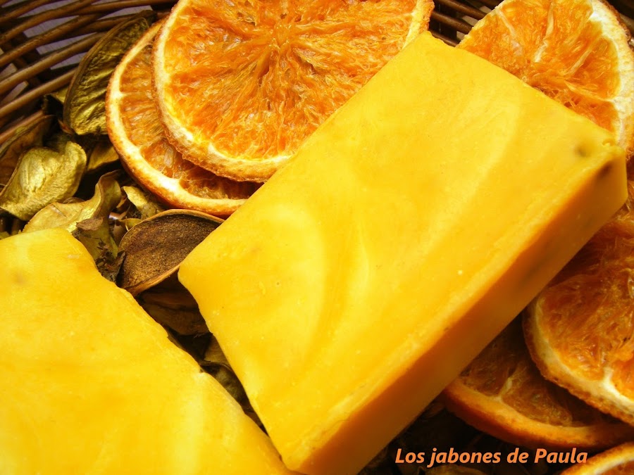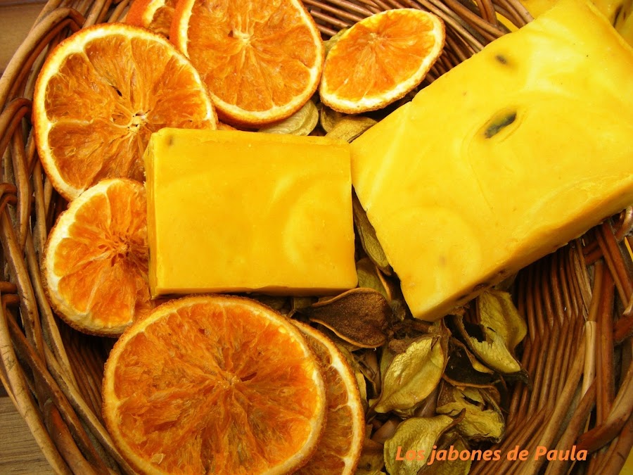 Cáscaras de naranja y limón en trocitos que como podeis ver una vez curado el jabón, cambian de color y se oscurecen mucho.