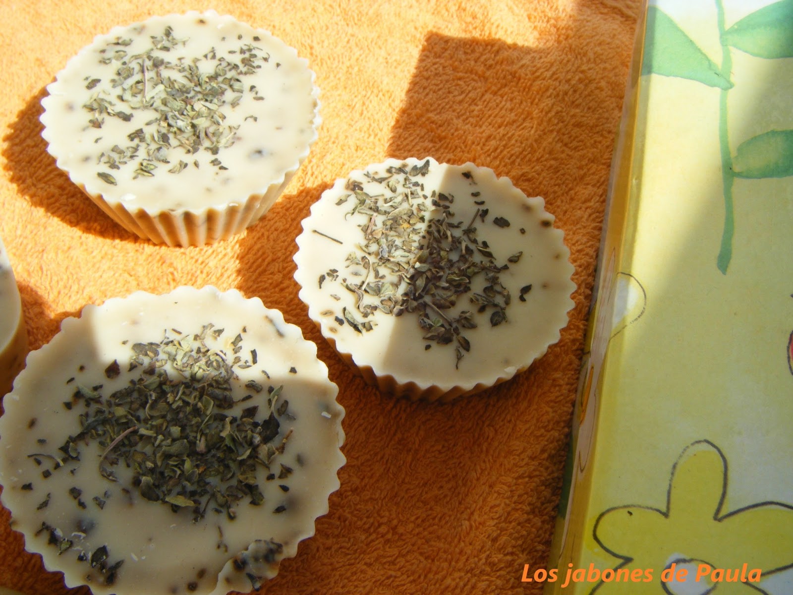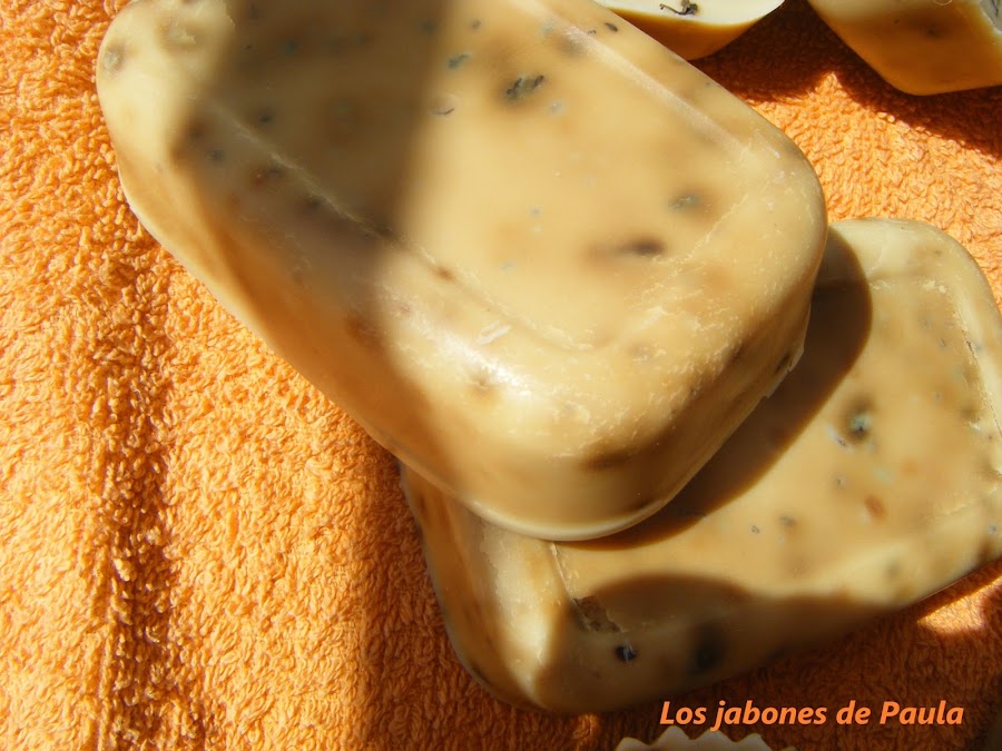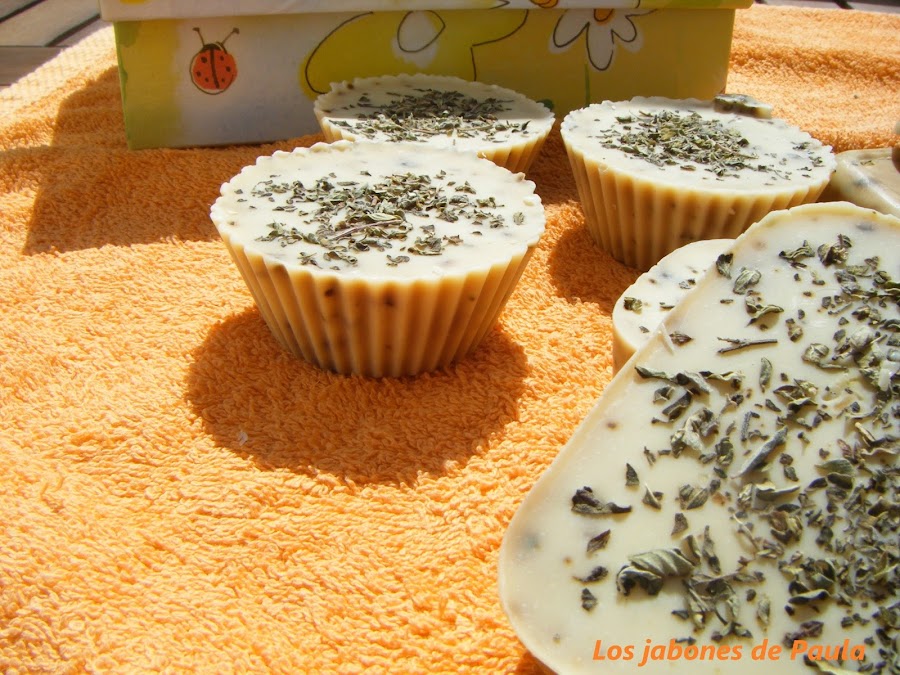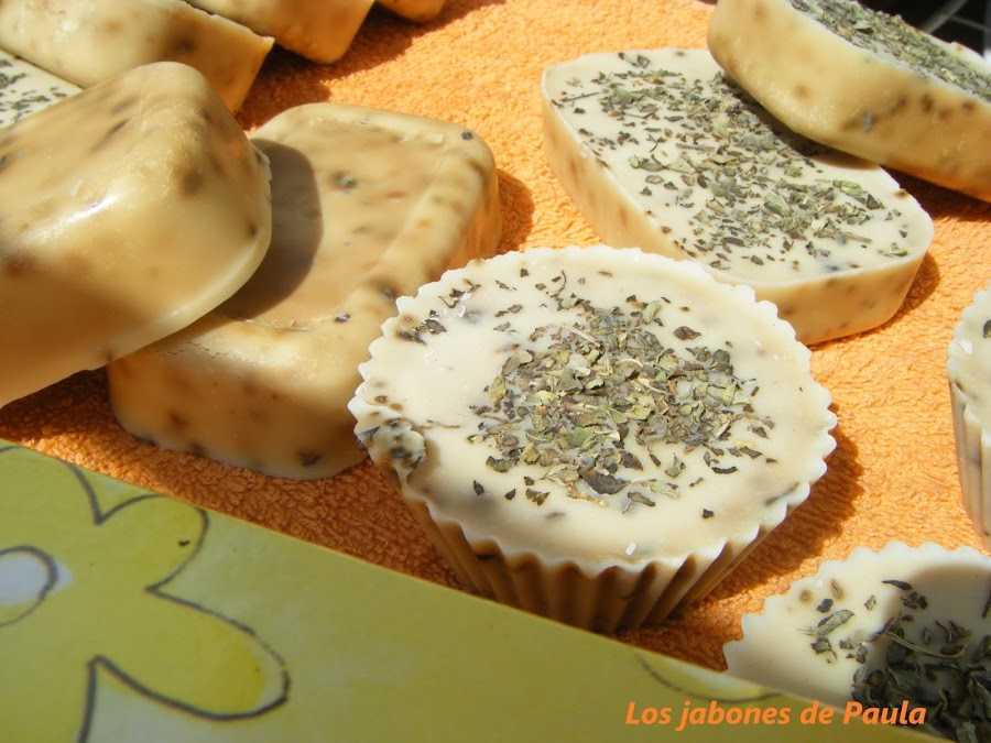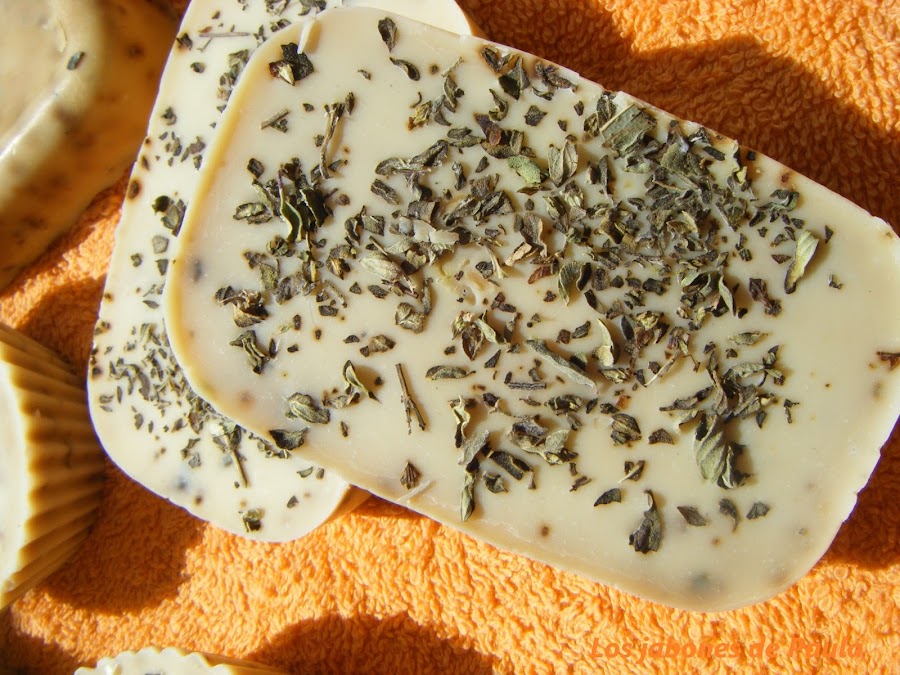 No lleva ningún aceite esencial y está hecho en moldes individuales en forma de pastilla de jabón que era la primera vez que los utilizaba, quedan bonitos pero cuestan un poco de desmoldar. Fue una prueba aunque a mi me gusta más hacerlos en un molde grande y luego cortarlos, me parecen como más rústicos.