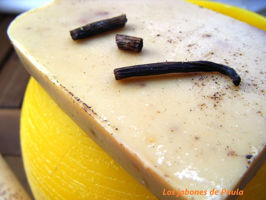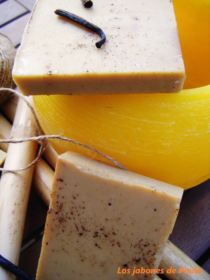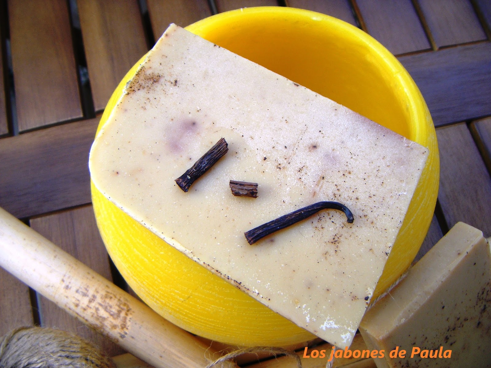 Hecho con Aceite de Oliva Virgen Extra, Aceite de Coco, Leche, Vainilla en polvo, Aroma de Vainilla, aceite esencial casero de vainilla y Aceite de Almendras en la traza.